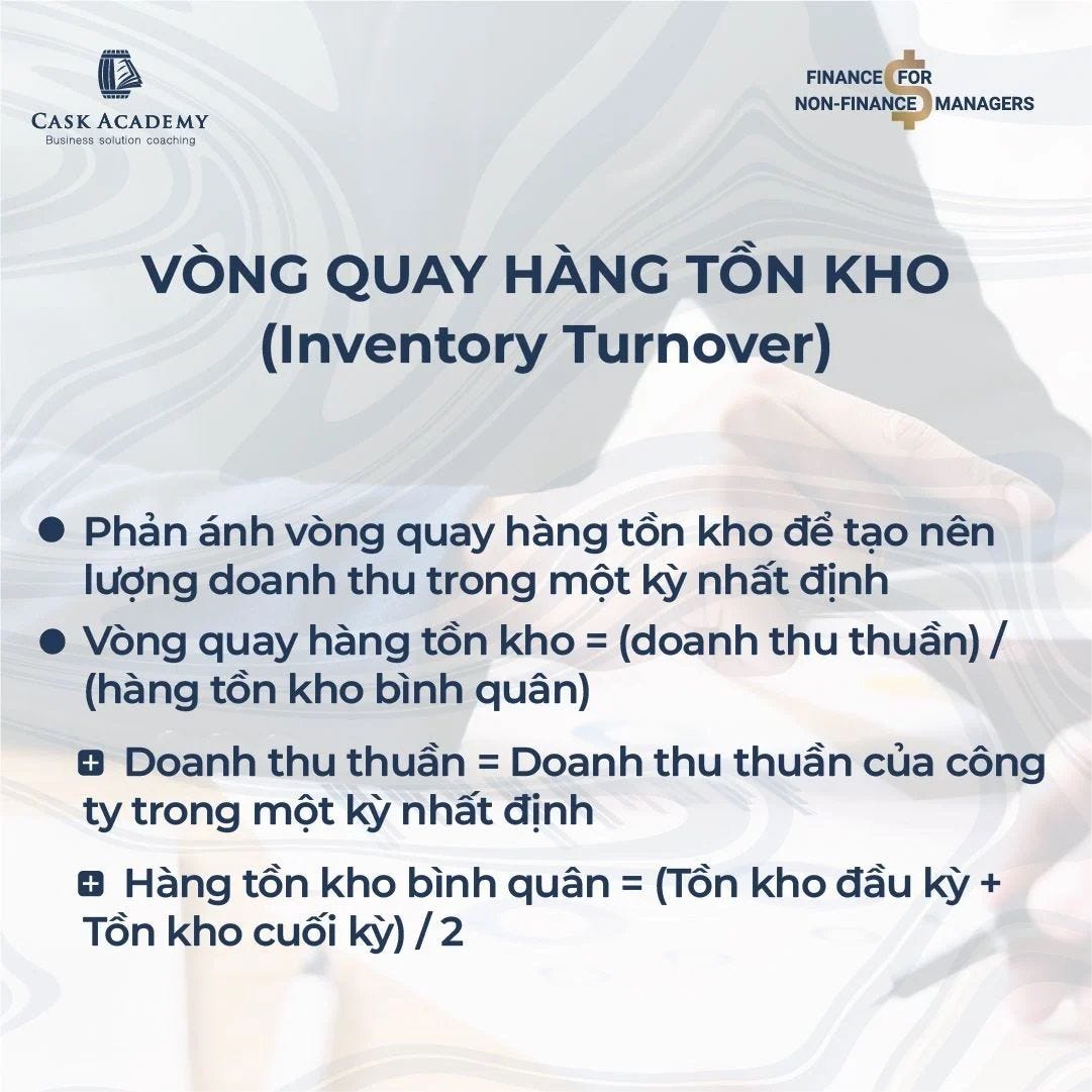 Vòng quay hàng tồn kho = (doanh thu thuần) / (hàng tồn kho bình quân)