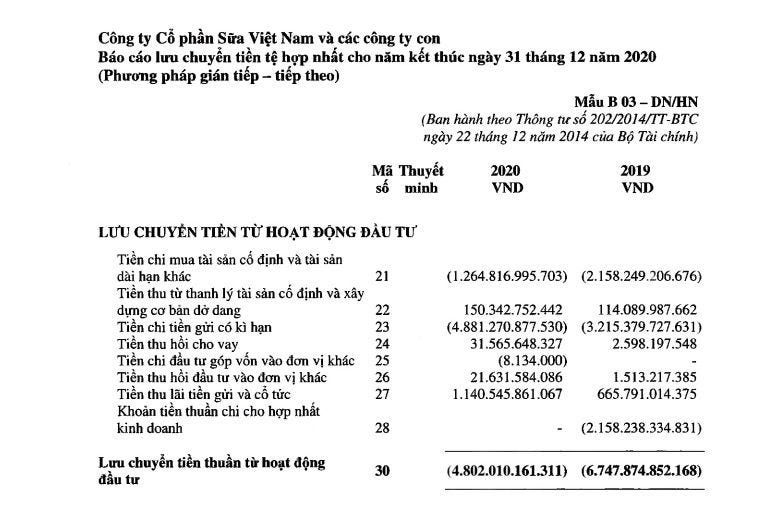 Ví dụ: CapEx của CTCP sữa Việt Nam năm 2020 được tính như sau: