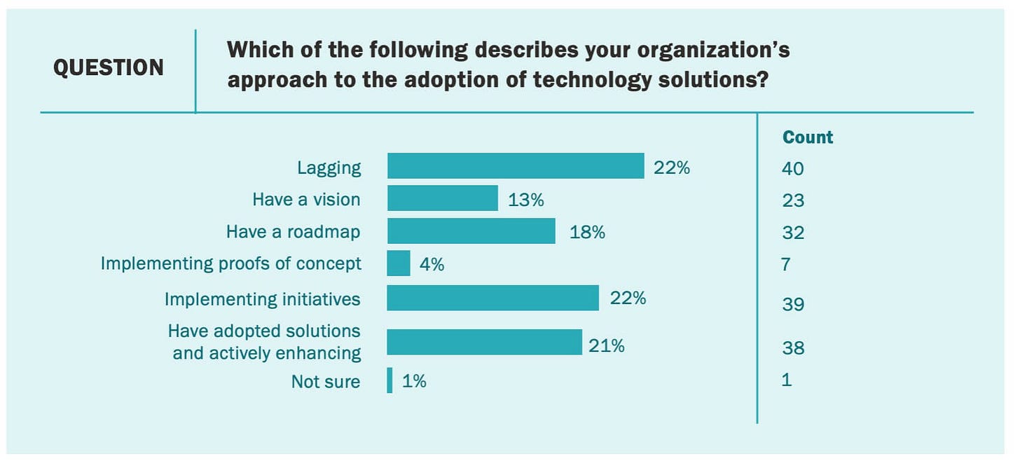 Hầu hết đáp viên đều đồng ý rằng dù chuyển đổi số là tất yếu, tại nhiều doanh nghiệp, quy trình này đang diễn ra một cách khó khăn và chậm chạp. Dựa trên khảo sát, trong khi 31% khẳng định tổ chức của họ đã có lộ trình hoặc định hướng rõ ràng, thì có 22% phản hồi rằng họ đang bị bỏ lại phía sau trong công cuộc chuyển đổi số.