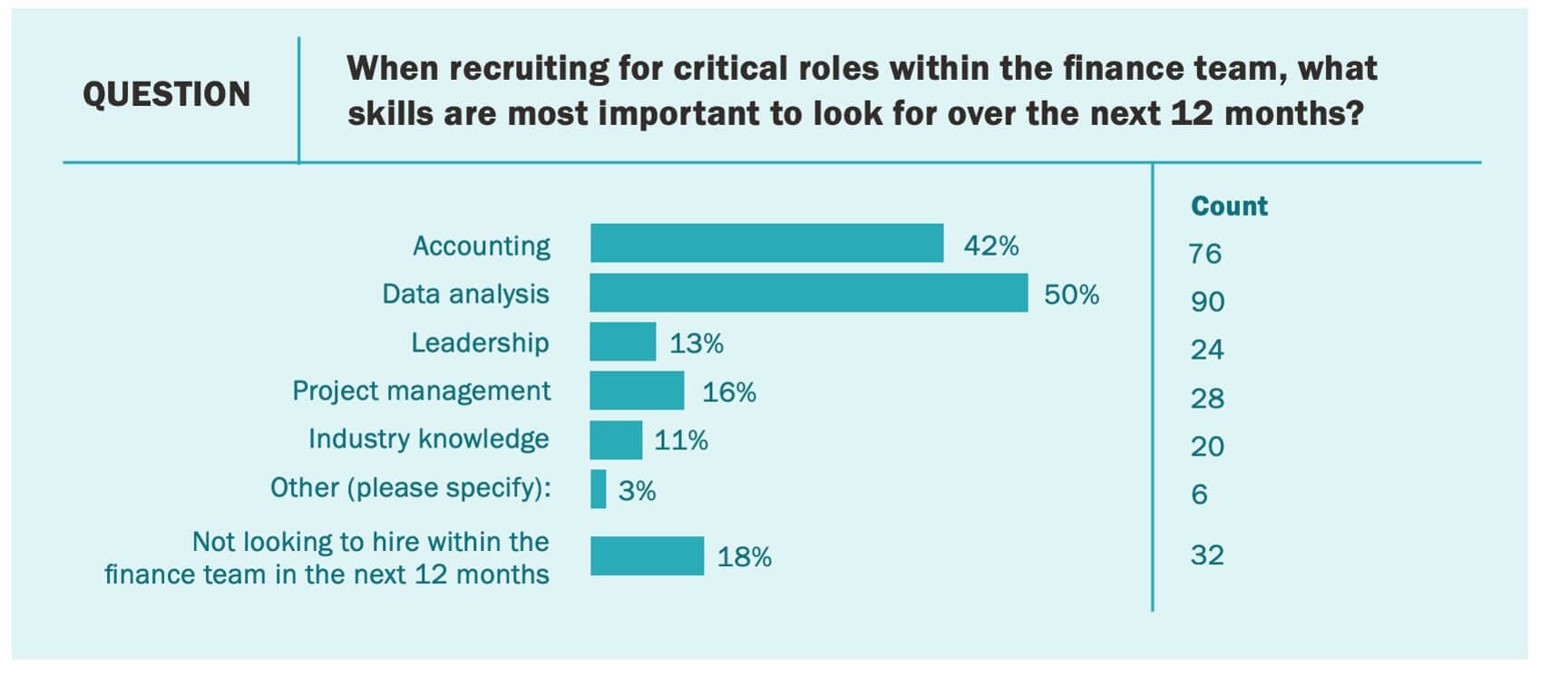 Ngoài ra, theo một CFO ẩn danh chia sẻ, mặc dù đang chịu ảnh hưởng bởi lạm phát, một số lĩnh vực kinh doanh vẫn đang tăng trưởng nên vẫn cần nhiều nhân sự tài chính. Do đó, thử thách lớn nhất của CFO là làm thế nào chiêu mộ nhân tài phù hợp với tiêu chí đã đặt ra. Những kỹ năng quan trọng nhất được tìm kiếm ở ứng viên là phân tích dữ liệu và kế toán.