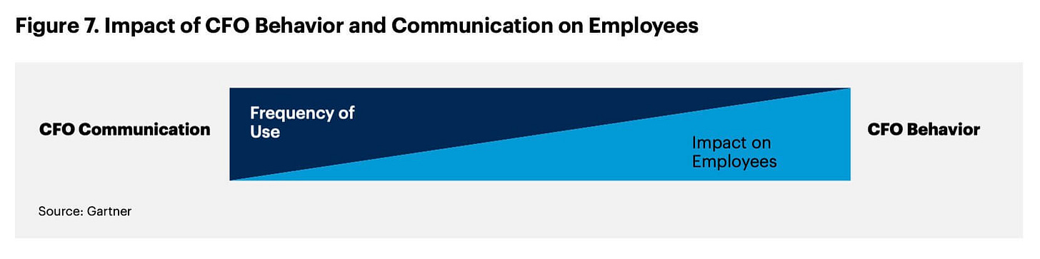 Điều đầu tiên các nhà quản lý tài chính cấp cao cần làm đó là điều chỉnh hành vi của bản thân. Báo cáo của Gartner cho thấy, hành vi của nhân viên không thật sự điều chỉnh chỉ vì yêu cầu của cấp trên, họ chỉ thay đổi khi chứng kiến cấp quản lý có những hành động cụ thể và thiết thực. Điều này cũng góp phần xây dựng văn hóa làm việc hiệu quả và lành mạnh.