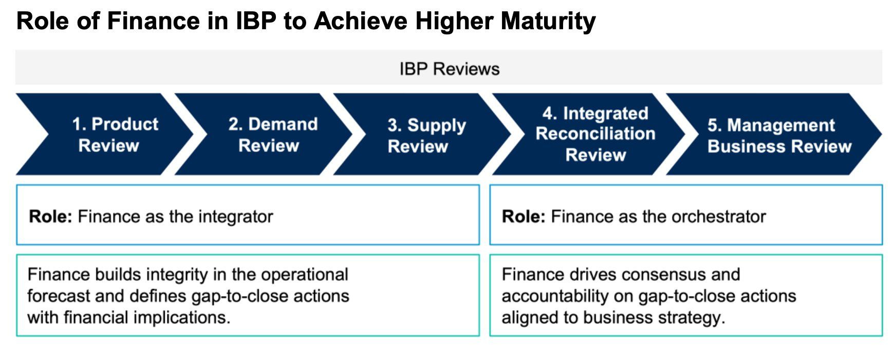 Theo đề xuất từ Gartner, để làm được điều này, doanh nghiệp cần nhìn nhận vai trò của bộ phận tài chính ở mức cao hơn khi lập kế hoạch kinh doanh tích hợp (IBP: integrated business planning), nhằm xây dựng sự đồng thuận giữa các phòng ban, cũng như thúc đẩy tinh thần trách nhiệm khi phát sinh vấn đề liên quan đến khía cạnh tài chính. Bạn có thể tìm hiểu cụ thể hơn về việc xác định vai trò của bộ phận tài chính trong quy trình IBP tại hình dưới đây.