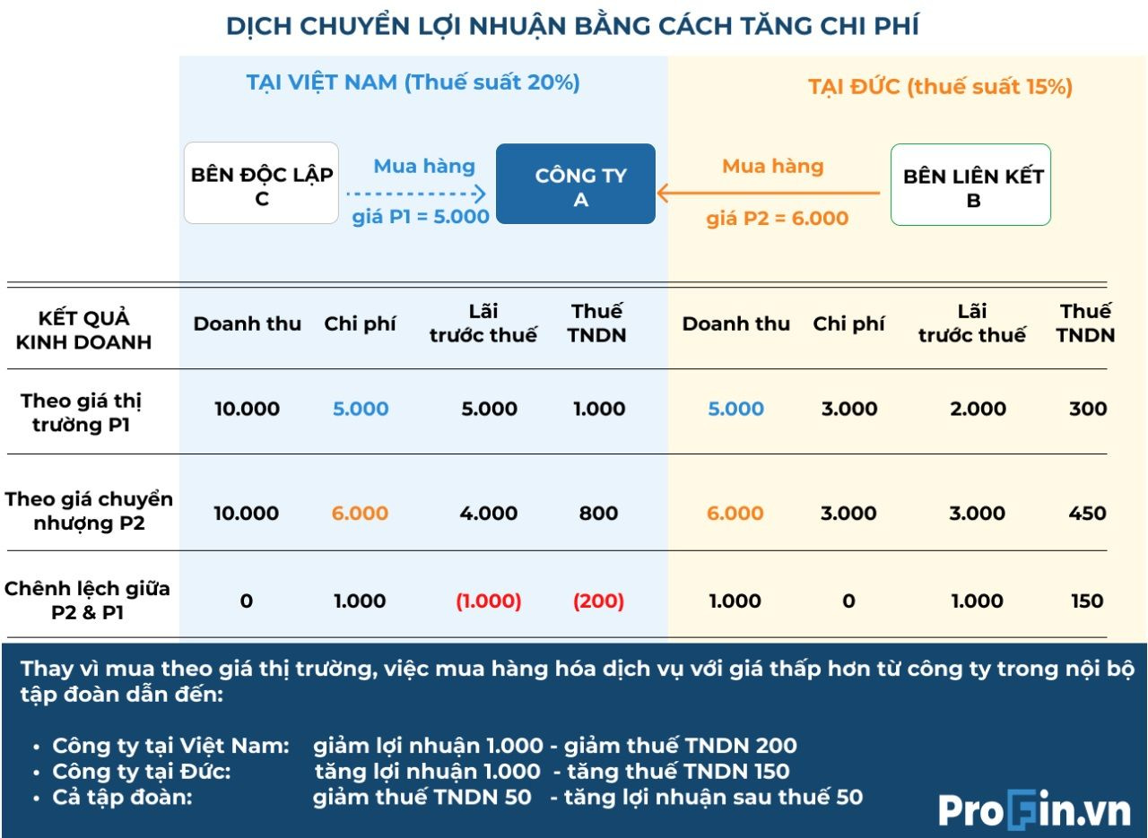Ví dụ 2: tăng chi phí ở nơi có thuế suất cao và tăng thu nhập ở nơi có thuế suất thấp bằng cách tăng chi phí đầu vào từ nội bộ tập đoàn.