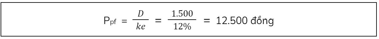 Ví dụ: Tính giá của cổ phiếu ưu đãi của công ty ABC với cổ tức được nhận mỗi năm là 1.500 đồng / cổ phiếu, tỷ suất lợi nhuận yêu cầu là 12%.