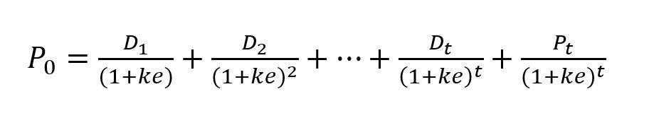 ke: tỷ suất lợi nhuận mà nhà đầu tư kỳ vọng nhận được khi mua cổ phiếu. ke thường được xác định bằng mô hình CAPM.