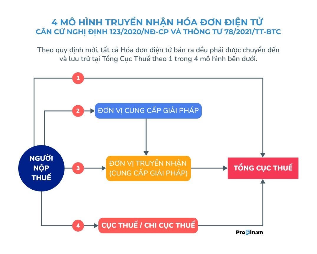 Mô hình 3: NNT sử dụng HĐĐT và chuyển hóa đơn thông qua đơn vị truyền nhận để gửi dữ liệu cho Tổng Cục Thuế. Một điểm cần chú ý là với một số NNT có đội ngũ công nghệ thông tin, tự thực hiện giải pháp tạo lập HĐĐT bởi chính doanh nghiệp, thì cần kết nối với đơn vị truyền nhận để chuyển hóa đơn cho cơ quan thuế.