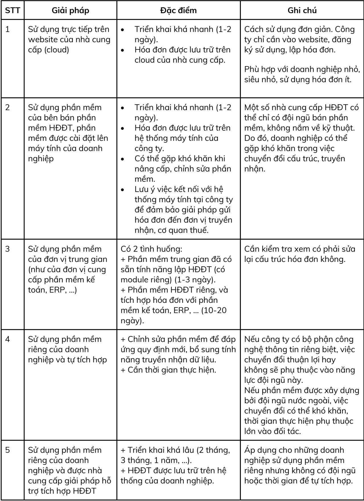 Có 5 giải pháp triển khai HĐĐT với những đặc điểm khác nhau: