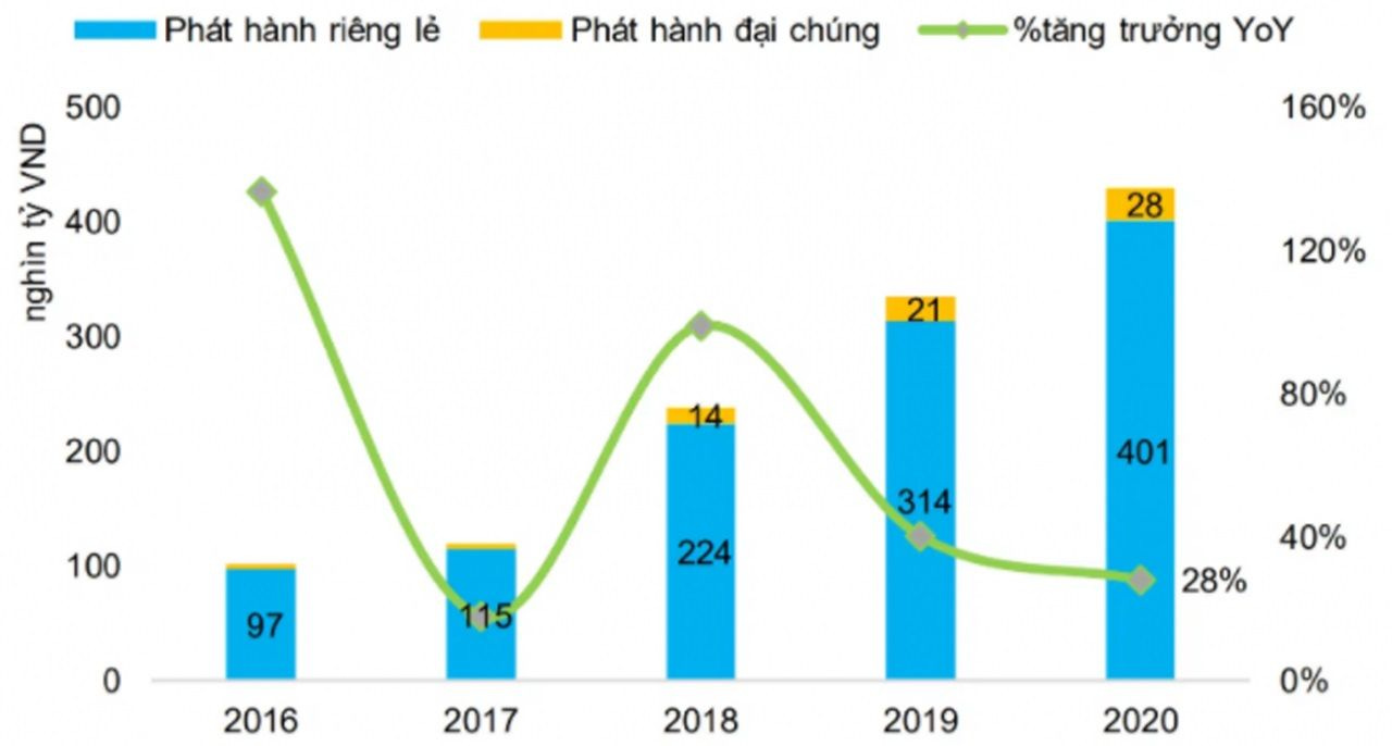 Tại Việt Nam, phần lớn các trái phiếu được phát hành theo hình thức chào bán riêng lẻ. Theo báo cáo thị trường trái phiếu của Công ty Chứng khoán VnDirect, trong quý IV/2021, tổng giá trị trái phiếu doanh nghiệp phát hành đạt mức 189.652 tỷ đồng. Trong đó có 122 doanh nghiệp phát hành 172.898 tỷ đồng trái phiếu riêng lẻ, chiếm 91,17% tổng giá trị phát hành. Thực trạng trên cũng đã diễn ra trong nhiều năm trở lại đây.