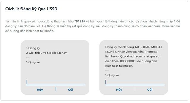 Khách hàng có thể đăng ký sử dụng dịch vụ theo 3 cách. qua USSD, qua SMS và cuối cùng là ứng dụng VNPT Pay. Với hai cách đầu tiên, sau khi khách hàng đăng ký, nhân viên Vinaphone sẽ liên hệ để hướng dẫn kích hoạt tài khoản.
