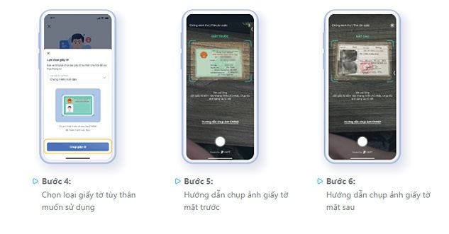 Để đăng ký qua ứng dụng VNPT Pay, khách hàng đăng nhập tài khoản VNPT Pay, sau đó đăng ký dịch vụ Mobile Money và xác thực bằng eKYC: chọn giấy tờ tùy thân, chụp ảnh chứng minh thư, căn cước công dân... và nhận diện khuôn mặt.